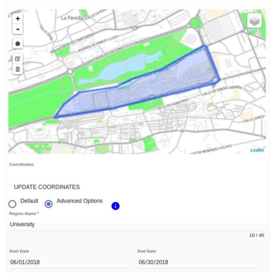 - When the experiments are executed by defining discrete times of interest (e.g., there is little interest in data collection between 2–6 AM) for each polygon previously defined.