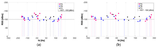 TX1-Doppler Shift (fd): (a) car velocity of 40 km/h, (b) car velocity of 60 km/h.