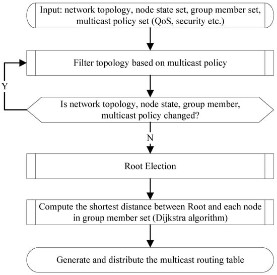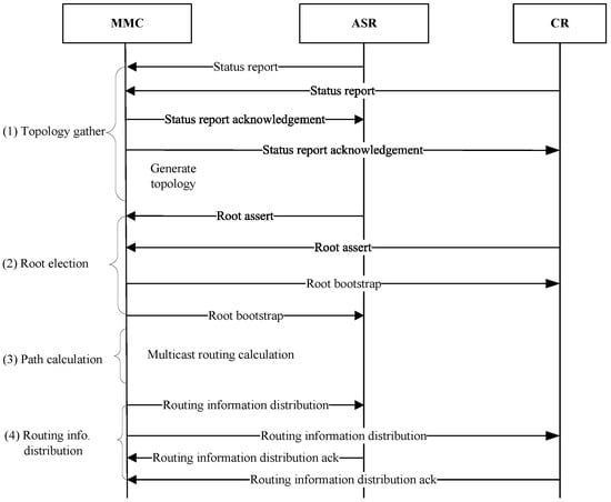 Figure 7 shows the main function flow of MMC which contains four procedure: (1) topology gather; (2) Root election; (3) multicast routing calculation; (4) multicast routing information distribution.