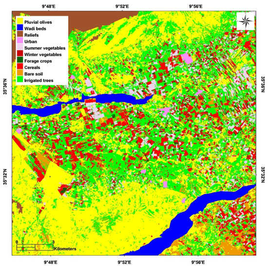 2.4. Classification of Satellite Images over the Kairouan Plain