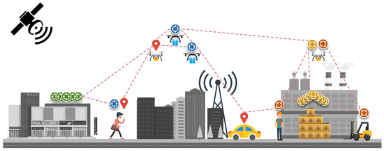 The successful integration of IoT and localization technologies is mutually beneficial and even essential for both fields. Such an advancement would enable numerous new IoT applications and products with location awareness and location-based reasoning. On the other side, multiple localization systems would communicate and interoperate with each other in order to obtain better context information, improve localization accuracy, resolve positioning errors or conflicts and activate/inactivate each other in order to save resources in various conditions. Ultimately, all these new applications and features will result in a broader and smarter ecosystem, as illustrated in Figure 2, with significant potential: smarter “smart cities”, “smart factories”, “smart buildings”, etc.
