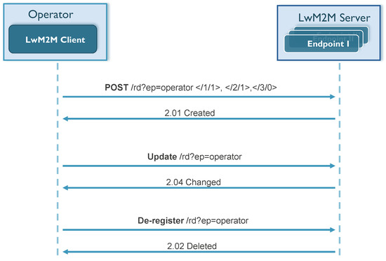 This not only allows device registration, but also enables a discovery of the application/device to understand what kind of location-related objects a device holds and which resources are exposed by the particular object. Further, by identifying object IDs and/or reading the descriptive resources (e.g., application type), additional and detailed information can be retrieved. Next, it can start reading the location data, retrieving the information it is interested in and also performing all the operations defined in the following section. In Figure 4, the LwM2M registration process is illustrated with a flow diagram. Besides the registration operation, an LwM2M client can also update its registration or perform a de-registration when shutting down or discontinuing use of an LwM2M server [10].