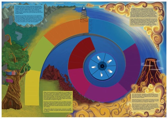 The first proposal is PHONOMAGIC (in Spanish, Fonomágica), a physical board that integrates non-traditional interaction using IoT technologies by means of sensors. For the design of the board, the anatomy of the inner ear is proposed, where aspects of the game are related and each level is associated with the levels of the ear (external, middle and internal). Each level has two associated sub-levels and a story and may be viewed as a cochlear labyrinth (Figure 4).