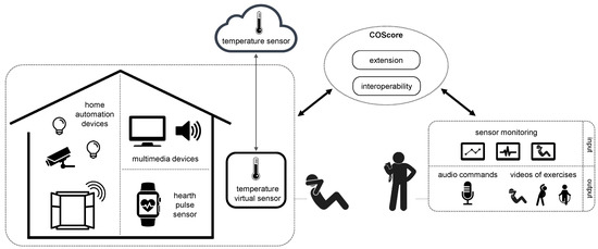 In this kind of system, sensors are the main source of information and, therefore, the obtained data should be shared with the rest of the parts that require it [5]. In addition, not only information captured by physical devices must be taken into account, but also data received or gathered by software components should be considered [6,7]. This type of virtual sensor can supplement the behavior of existing physical devices or emulate ones that are not present, with the aim of evaluating the tasks performed by existing or future installations [8,9]. In this sense, interoperability is a key problem concerned with those specific solutions having the need of maximizing the performance of communications among sensors and the rest of devices of an installation and/or between devices belonging to different systems [10]. This is even more relevant in the case of heterogeneous systems with different communication protocols, which may imply the use of a middleware [11].