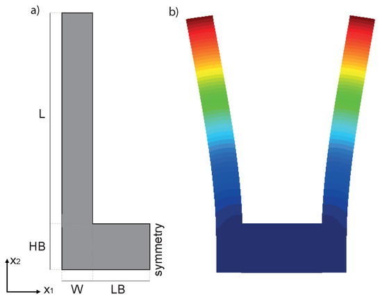 As a model problem, we will focus on the classical single-ended tuning-fork (SETF) resonator of Figure 2a, fabricated in single-crystal silicon and vibrating according to an in-plane bending mode (see Figure 2b). It is worth stressing that very similar conclusions could be reached working with other types of resonators like torsional, Lamè or length extensional ones. This simple structure has the benefit of featuring virtually zero anchor losses [17], dissipation originating mainly from thermoelastic effects. We will also neglect any contribution from gas damping assuming near vacuum working pressures and sufficiently large gaps. However, if required, this dissipation could be estimated as suggested in [18,19].