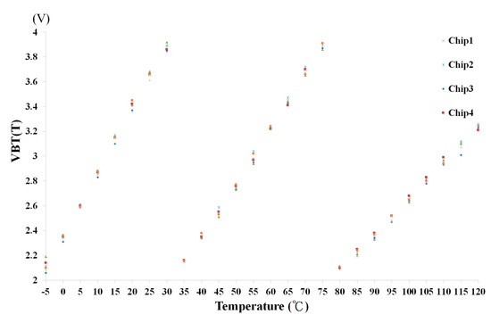 - < VL: When is lower than VL, the sensing temperature region will change from VBT1 to VBT2 or VBT2 to VBT3 until VL < < VH. Notably, when is in the VBT3, the sensing temperature region stays the same.