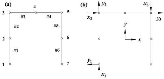 In order to solve the value of after substituting the node DOF shown in Figure 2 into Equation (2), it can be described as follows: