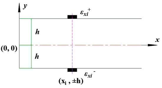 Considering each element with a specific length, , if one of the FBG sensors mounted on the structure surface is invalid, Equations (8a) and (8b) take on the reduced form with the corresponding weighting constant :