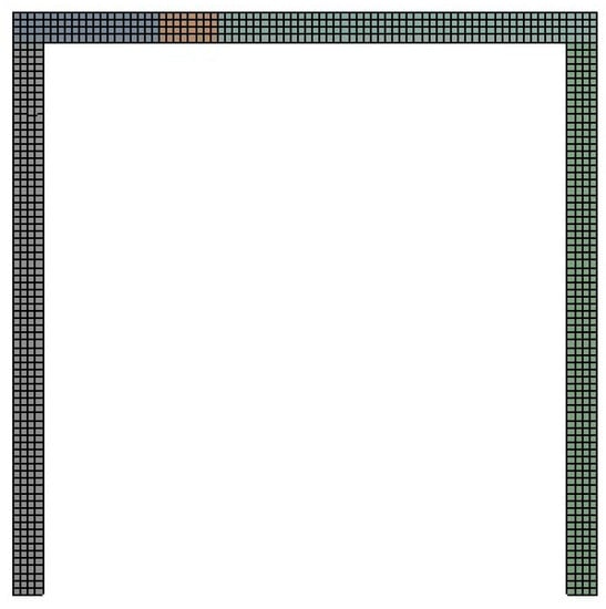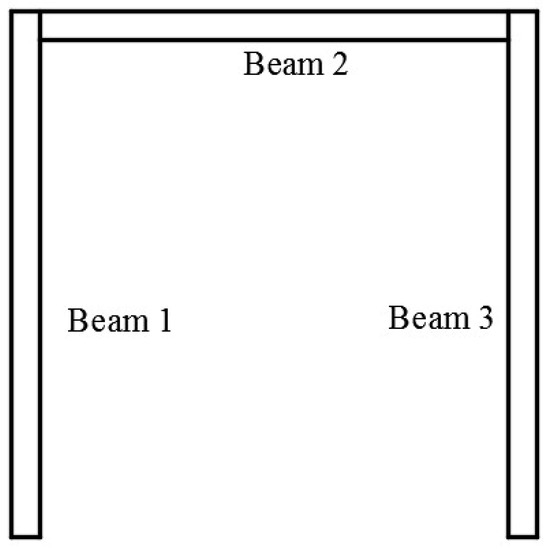 In the experiment, the size parameters of the gantry structure are expressed in Figure 5, with Young’s modulus and Poisson ratio . Element division results of the gantry structure are shown in Figure 1a.
