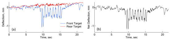 Deflections determined from Canny edge detection technique: (a) deflections of front and rear targets; (b) net deflections between front and rear targets.