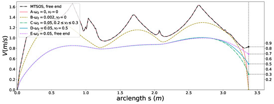 With and , we can enforce either equality constraints (by “=”) or target set inequality constraints (by “<”) on the terminal state of the speed profile. These constraints involve two types of typical applications. One is the scenario that the car needs to fully stop in front of obstacle at a certain point on the path or at the end of the path. A zero speed and a zero acceleration at need to be guaranteed in this case. The other scenario occurs as a car tries to merge into an expressway from an entrance ramp, which needs to have the final speed fall in the speed limit range of the expressway. Other applications, such as keeping a fixed distance to the front car at the end of the path while matching the final speed with that of the front car can also be solved using this constraint in our framework. Such capacities are not present in [3,11]. If no strict boundary conditions on terminal states are required, the constraints can be deactivated by making , , , .