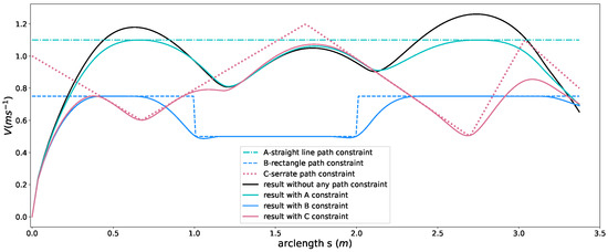 where is the upper boundary of at s, and . Three typical path constraints shapes of are demonstrated in Figure 3.