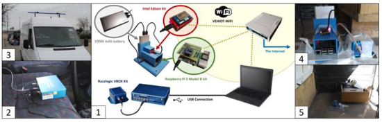 Intel Edison and Raspberry Pi 3 Model B kits include wireless communication interfaces (IEEE 802.11n) to facilitate connectivity with the Experiments Manager. The communication is managed and operated using TCP sockets. This configuration facilitates the installation of the low-cost experimental kits in any location inside the vehicle without communication wires. Even more, the sensors considered for low-cost experimental kits are straightforwardly attached to the development boards by using the GPIO ports.