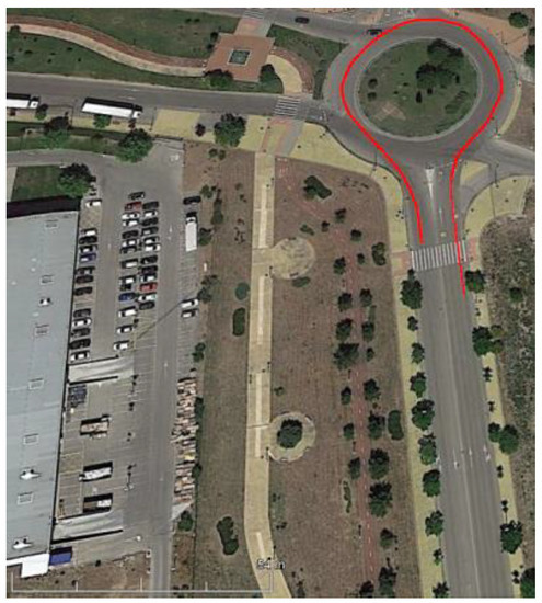 As shown in Figure 4, the considered tests were executed in Leganes (Madrid, Spain) using a Mercedes Sprinter van. The experiments were carried out when the road conditions were free from traffic restrictions preventing the correct execution of the considered maneuvers.