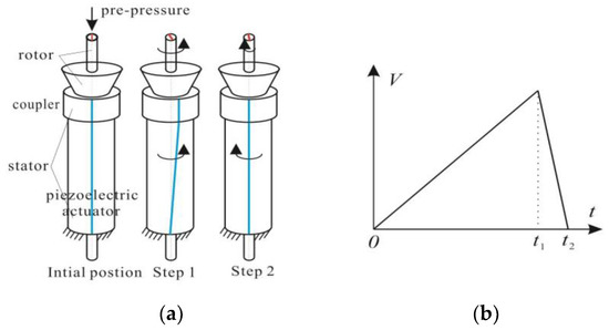 - Hunstig, M.; Hemsel, T.; Sextro, W. High-velocity operation of piezoelectric inertia motors: Experimental validation. Arch. Appl. Mech. 2016, 86, 1733–1741. [Google Scholar] [CrossRef]