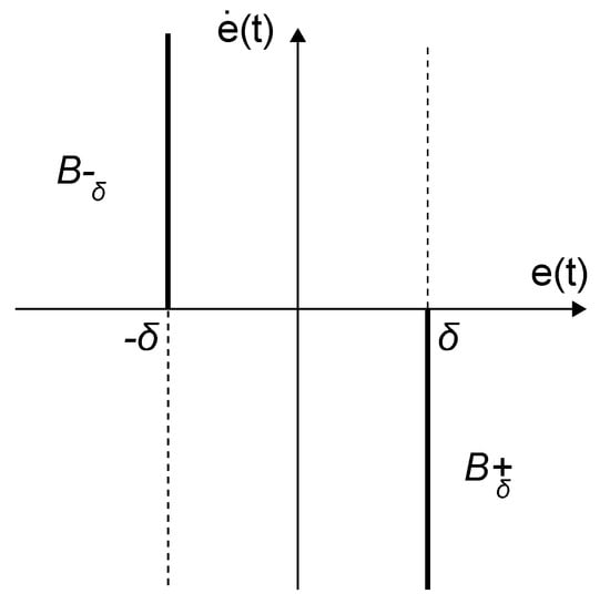 where the reset surface is given by , being some non-negative real number. In this way, the controller states are reset every time its input enters the reset band. Normally, the reset band surface will consist of two reset lines and , as show in Figure 10. A standard reset compensator is obtained if .