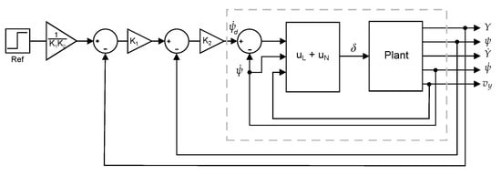 - Hahn, S.; Zindler, K.; Jumar, U. Two-degrees-of-freedom lateral vehicle control using nonlinear model based disturbance compensation. IFAC-PapersOnLine 2016, 49, 182–189. [Google Scholar] [CrossRef]