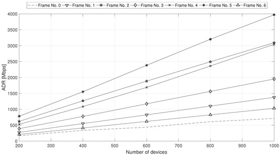 - Aggregate Data Rate (ADR), computed as the sum of the data rates achieved by the multicast MTC devices.