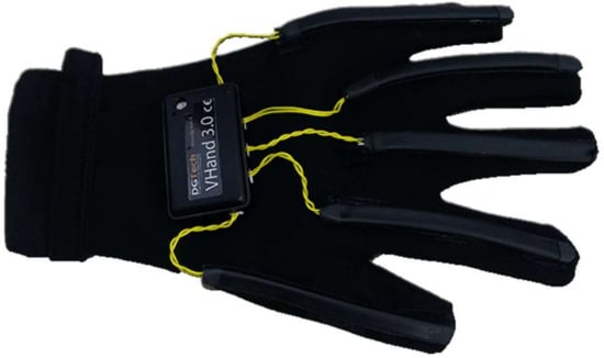 - Dipietro, L.; Sabatini, A.M.; Dario, P. A survey of glove-based systems and their applications. IEEE Trans. Syst. Man Cybern. Part C (Appl. Rev.) 2008, 38, 461–482. [Google Scholar] [CrossRef]