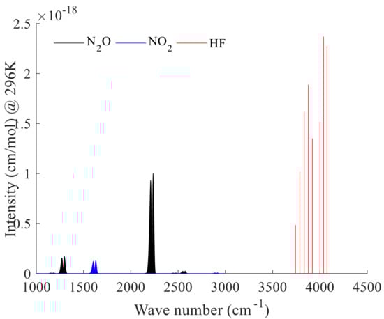N2O, NO2, and HF line intensities and distributions.