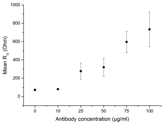 3.1. Characterization of the Antibody-Functionalized Electrodes
