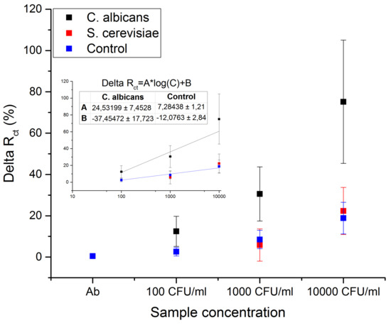 - Hassan, R.Y.A.; Bilitewski, U. Direct electrochemical determination of Candida albicans activity. Biosens. Bioelectron. 2013, 49, 192–198. [Google Scholar] [CrossRef] [PubMed]