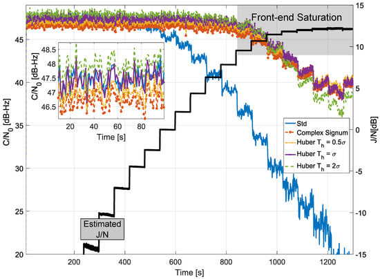 - Betz, J.W. Effect of Partial-Band Interference on Receiver Estimation of C/N0: Theory. In Proceedings of the National Technical Meeting of The Institute of Navigation, Long Beach, CA, USA, 22–24 January 2001; pp. 817–828. [Google Scholar]