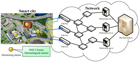 For a smart city, to create a smarter environment and improve the quality of its citizens’ lives, it is indispensable to equip the city with the functions of sensing the weather and the surrounding environment. Liu et al. [7] put forward an idea to establish a smart urban sensing system architecture using Internet of Things (IoTs) which is equipped with sensing and monitoring systems for PM2.5, temperature, and noise. This system can efficiently monitor the condition of air pollution and other environmental pollution of the city and collect data for analysis and strategy evaluation. Zhang et al. [8] used IoTs technology and combined information such as social media, air quality, taxi trajectory, and traffic conditions, and integrated machine learning technology, which has become one valuable application in smart cities. Zeng and Xiang [9] also proposed an air pollution sensing and monitoring system applied to smart cities. This system adopts a Q-learning algorithm to realize the computation of an adaptive sampling scheme. Apart from these studies, there are also other studies about developing various sensors to investigate air pollution. For instance, Ghaffari et al. [10] puts forward a nitrate sensor whose sensitivity and accuracy had been well verified in experiments.