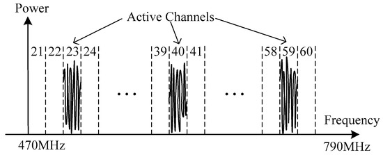 With the increase of wireless communication, spectrum resources have become increasingly scarce. However, most primary users, or authorized users, do not use the spectrum resources allocated to them most of the time [1]. For example, RFeye node [2] is used to monitor the wireless spectrum at Queen Mary University of London, and most of the spectrum resources are found to be idle [3]. TeleVision White Space (TVWS) in the Ultra High Frequency (UHF) band is the spectrum band not used by Digital Terrestrial Televisions (DTT), and Programme Making and Special Events (PMSE). The wireless communication network using TVWS can cover above 10 km in diameter, and it has strong penetration capabilities for buildings, mountains and forests. Cognitive radio devices working in TVWS can be used in rural areas where the communication infrastructure is imperfect to build a communication link among machines and improve residents’ access to the Internet. The communication regulator in the United Kingdom, the Office of Communications (Ofcom), announced that using TVWS does not need a communication license in December 2015 [4]. Therefore, TVWS is one of the most promising opportunistic spectrum access resources.