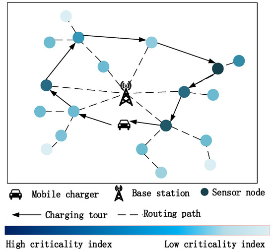 Wireless Sensor Network (WSN) is widely used in many applications, such as environmental monitoring, target tracking, security surveillance, etc. [1]. As nodes in a network are powered by energy-limited batteries, the network lifetime is always limited by nodes’ energy [2]. Owing to recent advances in Wireless Power Transfer (WPT) technology [3], a novel application named Wireless Rechargeable Sensor Network (WRSN) provides a promising approach to make sensor nodes work perpetually and has drawn growing attention from the research community [4,5,6,7,8].