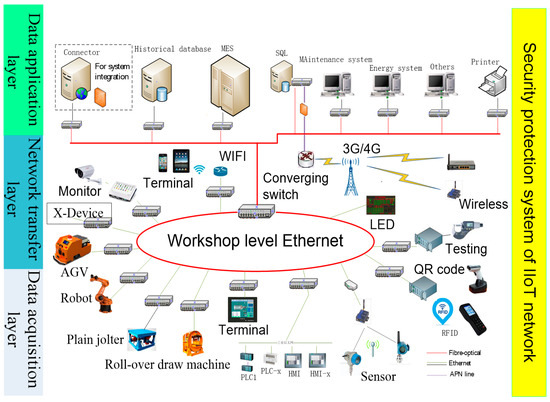 Based on the above method and structure, the IIoT network hierarchical structure is designed (Figure 3). An IoT network designed for production site needs to consider complex and changeable production environments. The network has particularity and expansibility and requires higher data analysis and system security.