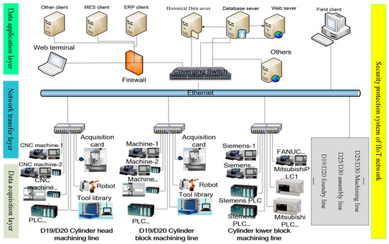 There are many complex data produced in the diesel engine production process [35]. The network connecting the production units of diesel workshop not only needs to meet the access of all kinds of equipment layer and control layer system, but also needs to meet the integrated access the upper information system, such as ERP, PLM, etc.