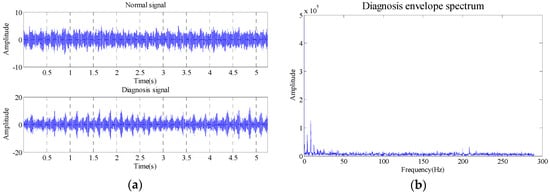 Waveform of time domain and envelope spectrum. (a) Time domain waveform; (b) Envelope spectrum waveform.