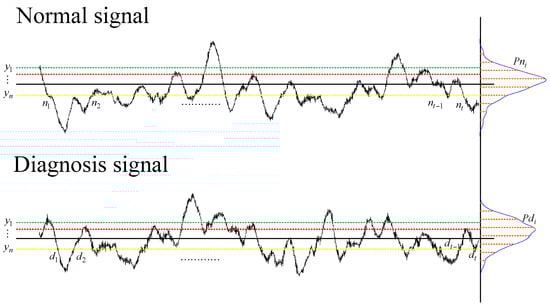 where Px(t) is the probability density function value at t, is probability density distribution function of the rebuilt signals, Pj is a probability density distribution function of normal condition signal, is a frequency density distribution function of the rebuilt signals, qj is frequency density distribution function of normal condition signal, j from 1 to n.