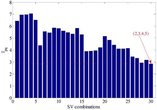 According to the analysis of evaluation function of statistical information, the optimal SV combination obtained is 2, see Figure 21.