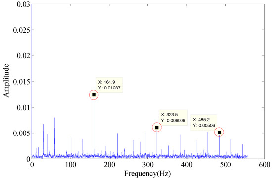 As shown in Figure 25, the fault characteristic frequency of the proposed method (161.9 Hz) can be identified and is identical to the calculated result, so the effectiveness of the developed method has been verified successfully.