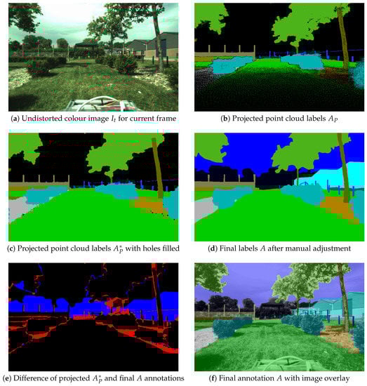 The editing capabilities of the image annotation tool (Section 4.1) are then used to refine the projected semantic map to match the corresponding image and final labelling, as shown in Figure 7d. Label correction is often needed at the edges of semantic regions.