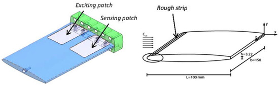 The most relevant modal parameters are probably the natural frequencies. Valentin et al. [19] obtained the natural frequencies of a submerged disk with very small axial and radial confinements to rigid walls by using PZTp. Conclusions regarding the reduction of the natural frequencies with small distances to rigid surfaces were consistent with past analytical models [18]. The case of a flexible disk approaching a non-rigid surface has also been experimentally analyzed by the same author using PZTp [20]. This study shows that the trend of the natural frequencies, when the disk approaches a non-rigid surface is to increase with decreasing distance, which is the opposite behavior to when the disk approaches a rigid surface. A similar phenomenon is observed by Presas et al. [21], when analyzing the natural frequencies of an installed reduced scale model pump-turbine runner. In that case, PZTp are used to determine the Natural Frequencies and mode shapes of the turbine runner in a more realistic boundary condition (submerged and confined). At present, according to the authors’ knowledge, there are not satisfactory analytical or numerical models that can describe the influence on the natural frequencies of nearby non-rigid surfaces. In this context, PZTp have contributed to obtain reliable experimental results. Another complex flow situation, where PZTp have been successfully used, is the analysis of the natural frequencies of cavitating structures. In such case, it is expected that the added mass effect will be less important due to the presence of air. De La Torre et al. [22] used PZTp to obtain the natural frequencies of a submerged hydrofoil with different incident speeds and cavitation conditions. In that case, the hydrofoil is rectified (special cavities of 0.35 mm for the PZTp are manufactured) in order to attach two PZTp flush mounted to the surface. In that experiment, the use of PZTp permitted obtaining the natural frequencies of the hydrofoil without disturbing the incident flow. One PZTp is used for exciting and the other for measuring the response (Figure 1). Results show that with respect to the non-cavitating case, the natural frequencies tend to increase with increasing cavitation volume near the hydrofoil.