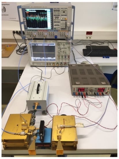 Photo of experimental setup of 60 GHz Doppler radar system.