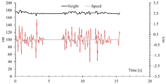 Figure 5 shows the changes in height pattern and instant speed observed for fall events. Part (a) of Figure 5 illustrates a fall event while sitting on a chair and part (b) shows an unintentional fall event while trying to sit on the floor from standing position. The observed instantaneous speed for the changes in the height pattern is evidence for the accuracy of the methods employed to generate the data and applicability of the sensor.