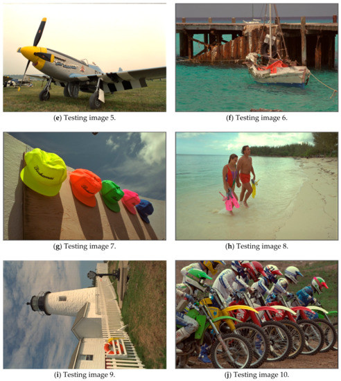 In order to evaluate different estimation methods fairly and objectively, ten 512 × 768 noiseless and standard test images supplied by Kodak company, as shown in Figure 6, are employed as testing images. The sets of noise parameters, a = {0.005, 0.010, 0.015} and b = {0.016, 0.036, 0.064}, are placed into the R, G, B channels of ten testing images respectively, to construct the noisy images.