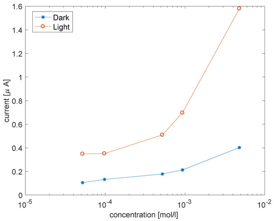 Figure 9 shows the current at fixed voltage as a function of the concentration of cysteine.
