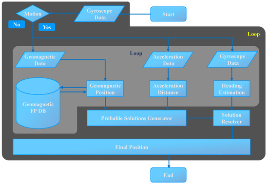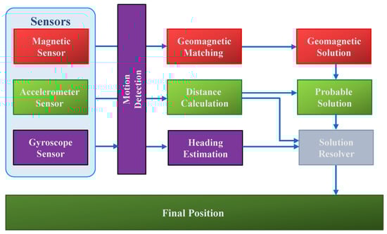 - Zhang, C.; Subbu, K.P.; Luo, J.; Wu, J. GROPING: Geomagnetism and crowdsensing powered indoor navigation. IEEE Trans. Mob. Comput. 2015, 14, 387–400. [Google Scholar] [CrossRef]