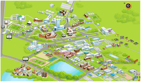 The experiment was performed using three different buildings located in Yeungnam University, Republic of Korea. Figure 11 shows the location of buildings used for the experiment on University map.