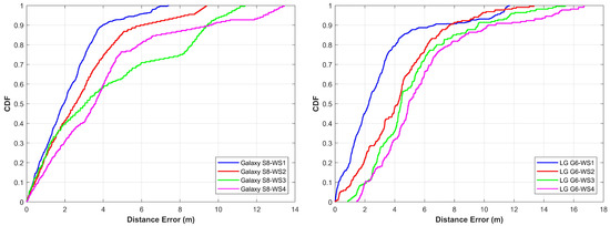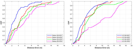 The error for Galaxy S8 is 2.3 m 50% of the time while LG G6 has 3.3 m error. The maximum error for Galaxy S8 and LG G6 is now almost similar which is 11.22 m and 11.89 m respectively.