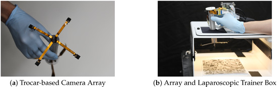 The trocar-based camera array offers improved FoV over traditional laparoscopes by utilizing multiple visual sensors. The extra field of view can encompass significantly more of the surgical area so that the surgeon does not have to spend as much effort adjusting camera location while performing surgical procedures.