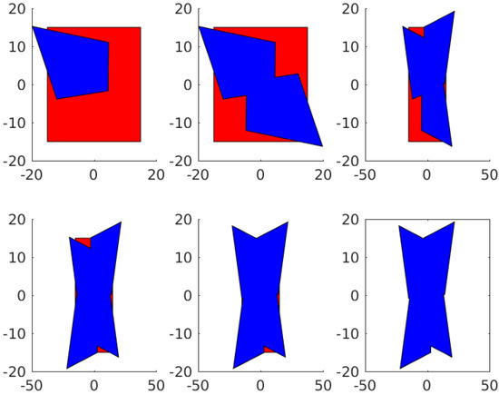 Another approach is to change the cost function for the optimization to better reflect our desire to create as large a region without blind spots as possible. A region without blind spots can be thought of as a region P such that, for any two points, . The direct path is . We can see that a region without blind spots is equivalent to a convex region. Thus, rather than maximizing the area of the FoV, we can instead seek to maximize the largest convex region fully contained within the FoV. Finding the largest convex region inside of a non-convex polygon was originally proposed and dubbed the “potato peeling problem” by Goodman [13] and the “convex skull problem” by Woo [14] and was later solved in polynomial time by Chang and Yap [15]. Other works have found solutions or approximate solutions to sub-problems such as the largest inscribed rectangle [31,32], longest line segment, or largest ellipse [33] contained within a non-convex polygon.