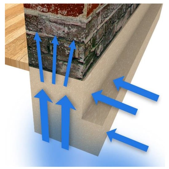 All buildings are exposed to various factors that erode the material of which they are made. Such factors include water [2]. Many buildings have damp walls and foundations [3]. This is evidenced by often appearing molds and fungi, dark spots, and detachment of plasters or paint coatings. This is especially factual for older buildings. One of many reasons for this is the technology and materials that were formerly used in construction—for example, lack of insulation. Moisture in the walls significantly reduces their durability. The bricks and mortar that contain water are significantly weakened and are less resistant to compression, which is particularly true for lime mortar. This results in both deteriorations of the building’s operational conditions and safety. In addition, the water accumulated in the walls significantly worsens the thermal insulation properties of the walls and contributes to their gradual erosion. Another important problem related to moisture in walls is their harmful impact on inhabitant’s health. Microclimate, which arises in rooms and walls with high humidity, often causes the formation of mold fungi that can cause respiratory diseases and intoxication.