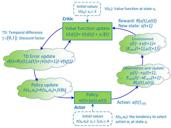 Flowchart of the proposed scheme when applying the actor–critic learning method.