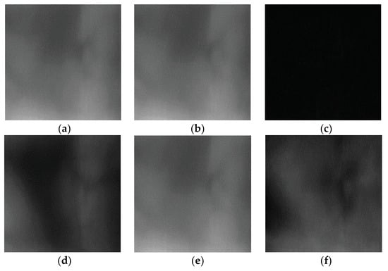 In previous CNN-based finger-vein recognition studies, instead of a method that determines the genuine or imposter by extracting the feature vectors of two images in the CNN’s fully connected layer or the layer before that, then finding the distance between these two feature vectors, a method using one difference image found in both the enrolled and input finger-vein images as the CNN input image was found to provide a higher recognition accuracy []. Based on these results, in this study, one different image (Figure 5c,f) obtained from the finger ROI image of the enrolled and input images found, as shown in Figure 3d, was used as the CNN input. As shown in Figure 5, the difference image of two images of the same class shows a dark pixel value due to the difference between the pixels of both images being small (Figure 5c, and the difference image of two images of different class shows a relatively bright pixel value due to the difference between the pixels of both images being large (Figure 5f). Genuine and impostor matches are finally determined based on the CNN output result.